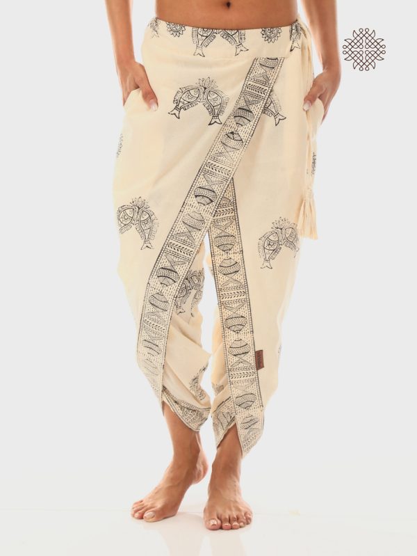 Meena Dhoti Pants - Hand Block Printed Off-White Cross Cut Dhoti Pants made in 100% cotton+D21
