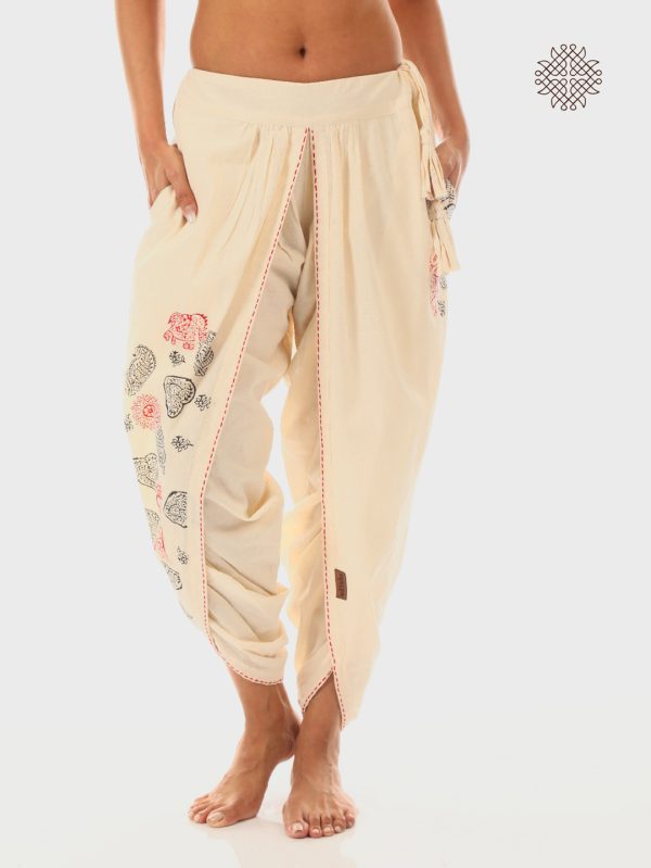 Meena Dhoti Pants - Hand Block Printed Off-White Cross Cut Dhoti Pants made in 100% cotton