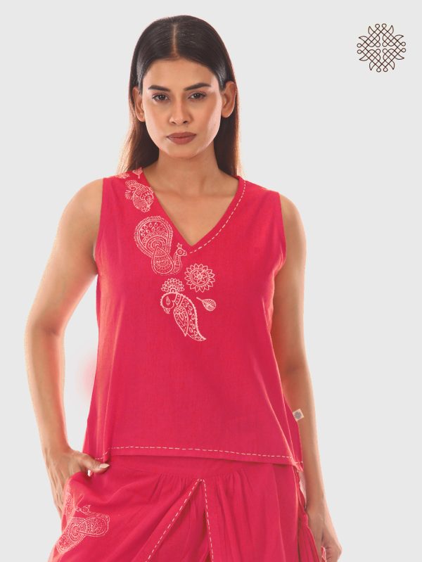 Rangavalli - Hand embroidered sleeveless crop top crafted in 100% cotton.