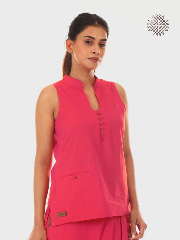 Padmini Kurti - Pink Coral Sleeveless Kurti crafted in 100% cotton