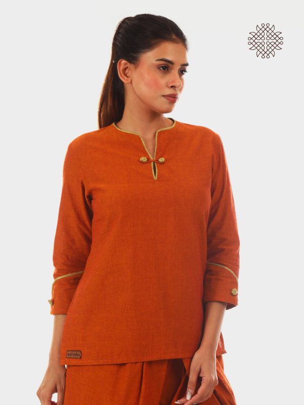 Mayura Kurta - Hand Block Printed Rusty Brown Crop Top crafted in 100% cotton