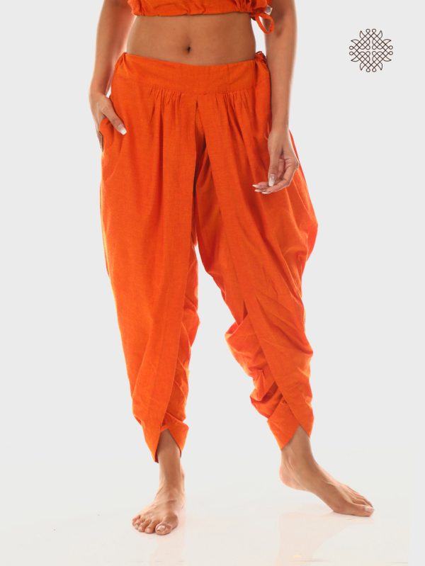 Kesari (saffron) Tulip Yuvaki Dhoti Pants with pockets crafted in 100% cotton