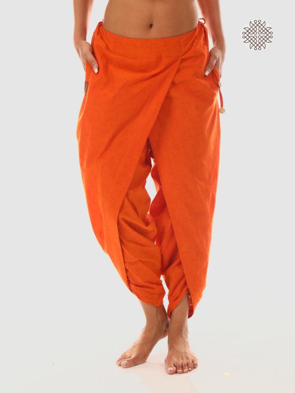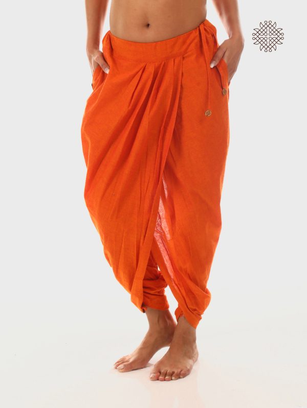 kesari (saffron) yuvaki, cross-cut dhoti pants with pockets crafted in 100% cotton
